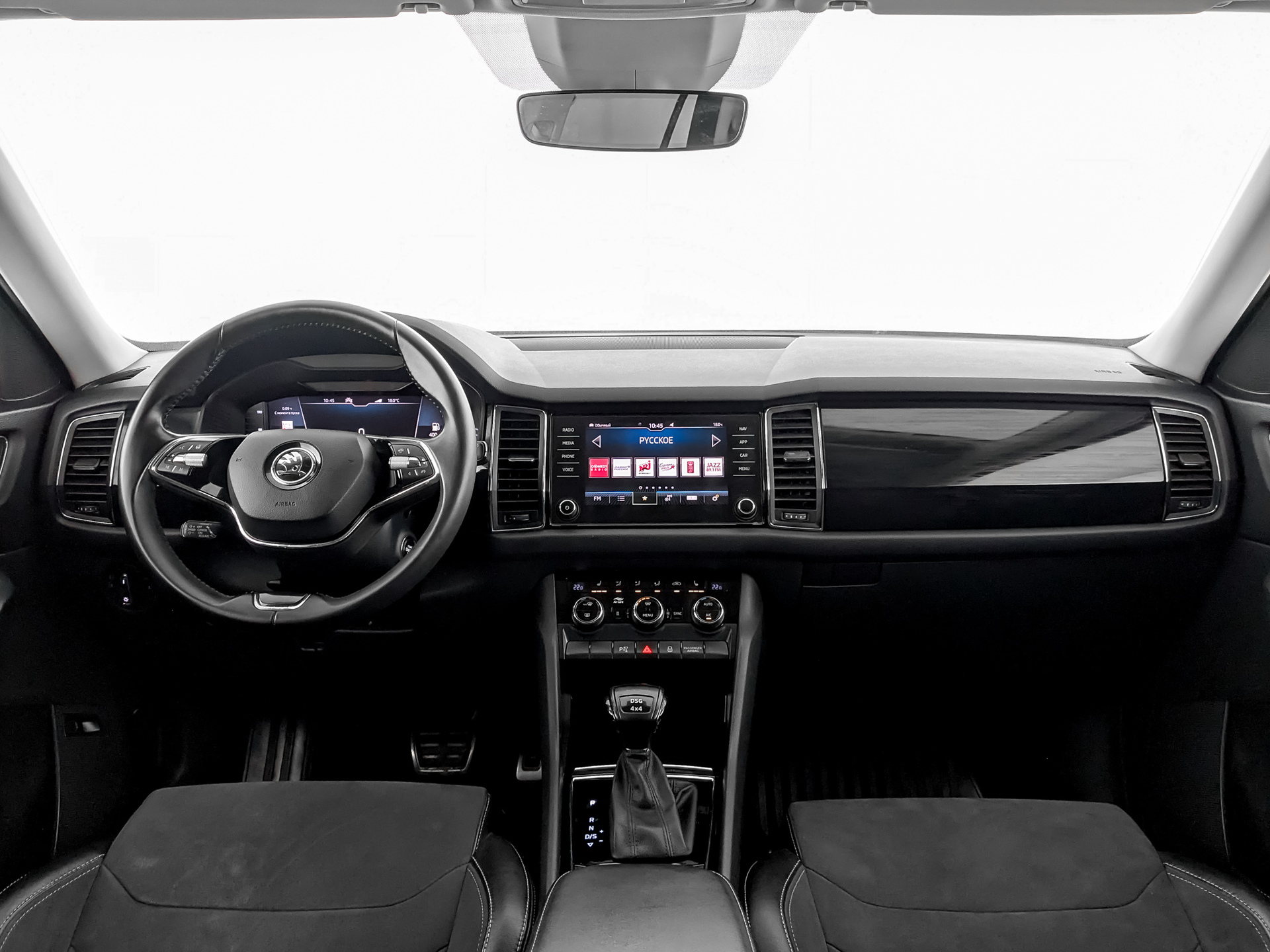 • Спортивное 3-спицевое кожаное рулевое колесо с управлением радио, телефоном и DSG